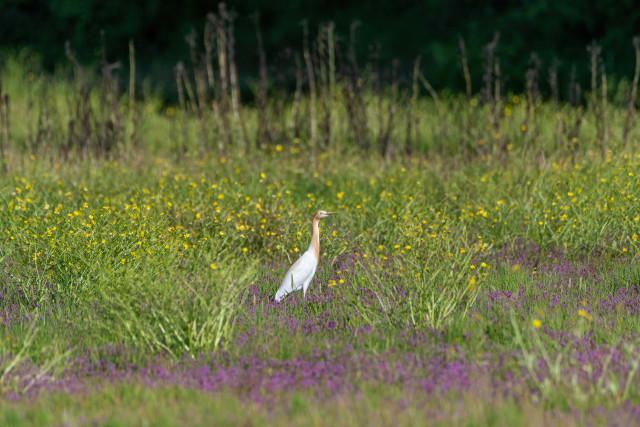 Eastern Cattle Egret in Vibrant Field