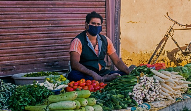 A vegetable vendor waiting customer in Nayatole.